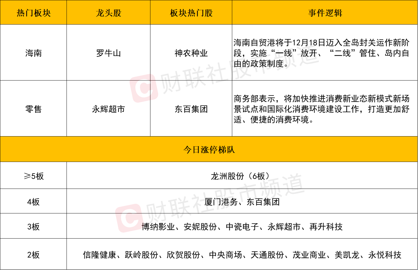 动静面上,今日海南省委关于制定国平易近经济和社会成长第十五个五年规划的发布。此中提出,加速完美商业港政策轨制系统。提拔优化以“零关税、低税率、简税制”“五便当一平安有序流动”为次要特征的政策轨制系统。此外,海南自贸港将于12月18日迈入全岛封关运做新阶段,实施“一线”铺开、“二线”管住、岛内的政策轨制。