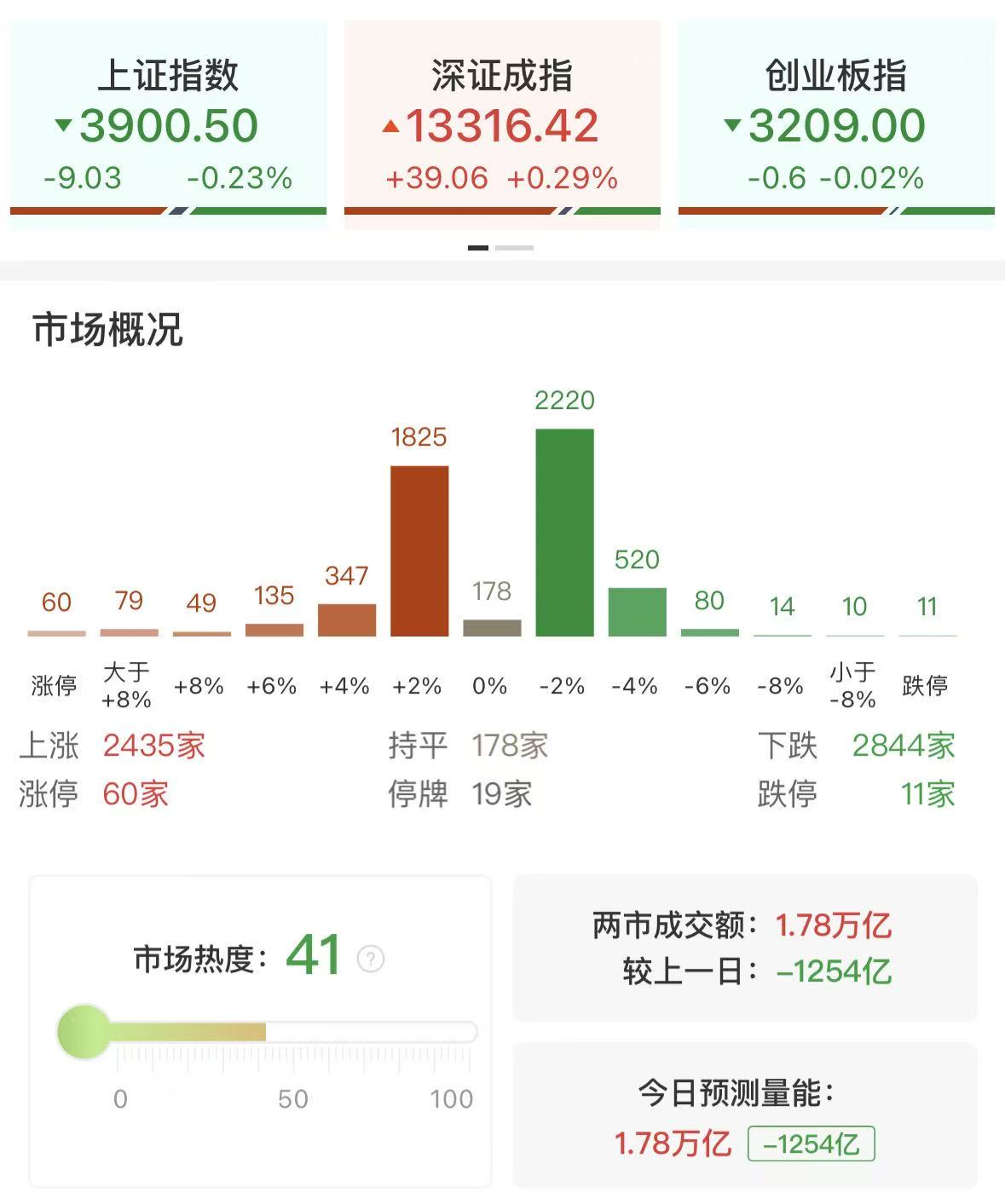财联社12月10日讯,市场探底回升,三大指数涨跌纷歧,深成指、创业板指盘中先后翻红,创业板指此前一度跌超2%。沪深两市成交额1。78万亿,较上一个买卖日缩量1254亿。盘面上,市场热点快速轮动,全市场超2800只个股下跌。从板块来看,海南板块持续走强,罗牛山、海南瑞泽等多股涨停。零售概念表示活跃,永辉超市3连板,茂业贸易、地方商场2连板。算力硬件概念回暖,新易盛再创汗青新高,长飞光纤涨停。下跌方面,银行板块走弱,招商银行、农业银行下挫。截至收盘,沪指跌0。23%,深成指涨0。29%,创业板指跌0。02%。